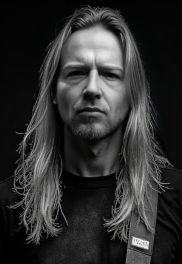 (b. 1971 - Fairfield, California, USA) From the age of fourteen, Shawn began his passion for music with a cheap guitar from Sears. Over the years, his skills progressed and became an eclectic concretion of various styles. Inspired by his childhood favorite, Nazareth, Shawn progressed into heavier and heavier music. Beginning with old school metal like Metallica, Slayer, and Dio, his tastes quickly became darker and more aggressive. His first exposure to death metal was an MTV music video by the then-new genre pioneers, Napalm Death, Shawn began following and emulating guitarists such as Chuck Schuldiner, Pat O'Brien, and Trey Azagthoth. Eventually, his love of Viking myths led him to Viking Metal, starting with warrior metal such as Manowar. Amon Amarth, Bathory, Wintersun, and Ensiferum would eventually make their way into his music collection as well, leading to his desire to write Viking Metal of his own. In 2022, after submitting DNA to 23andMe, Shawn found out about Naomi, a 3rd cousin from Norway. From there, the story of Nornsöng began.